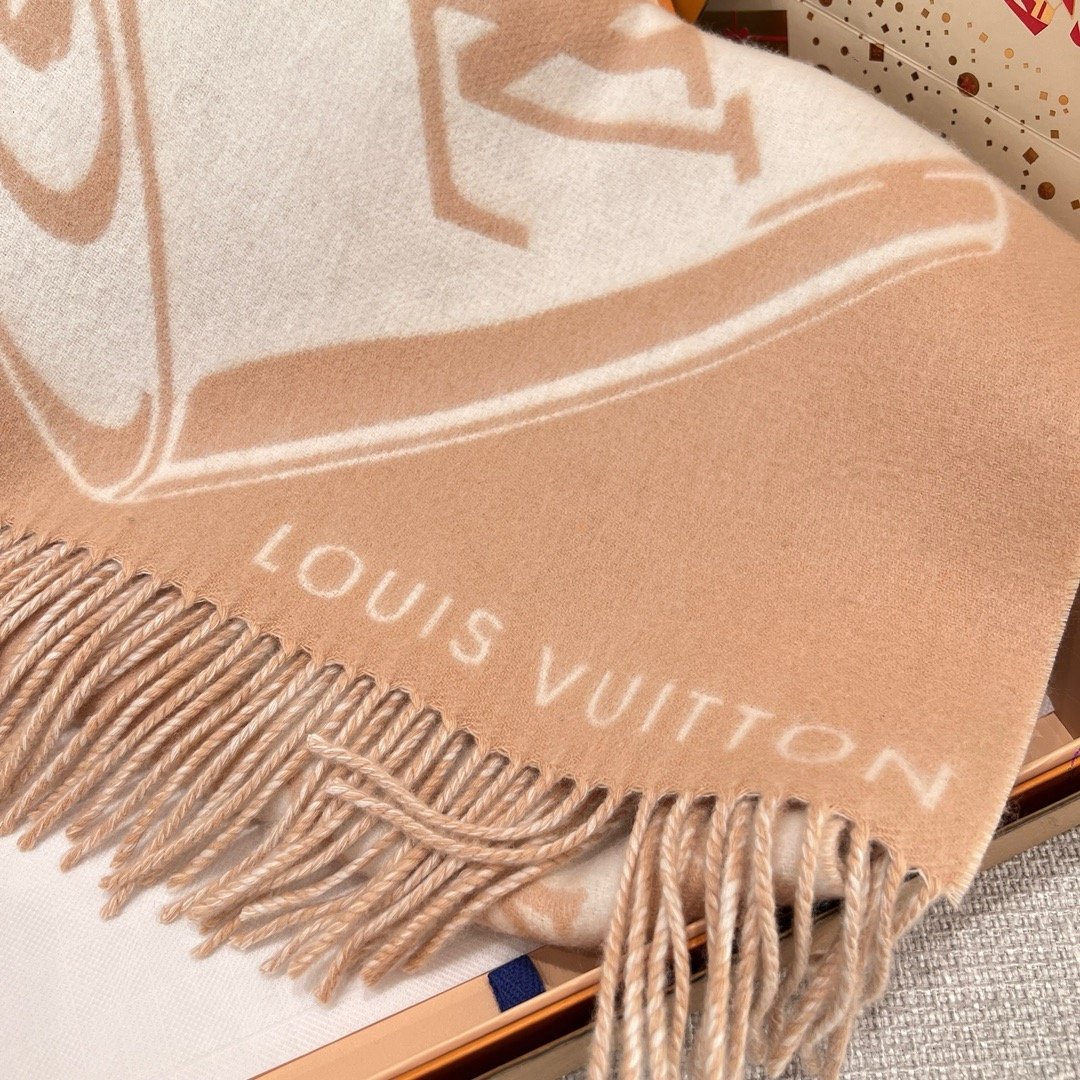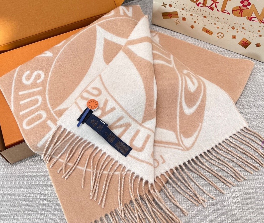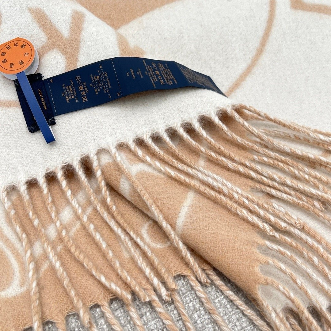 Discover elegance and warmth with the Louis Vuitton Lock Shawl in a refined milk tea shade. Crafted from 62% sheep wool and 38% cashmere, it delivers comfort and luxury in one piece. Moreover, the generous 45x215cm size offers endless styling options for both men and women. Whether attending an event, dressing casually, or braving the cold, this shawl elevates your style while keeping you cozy.