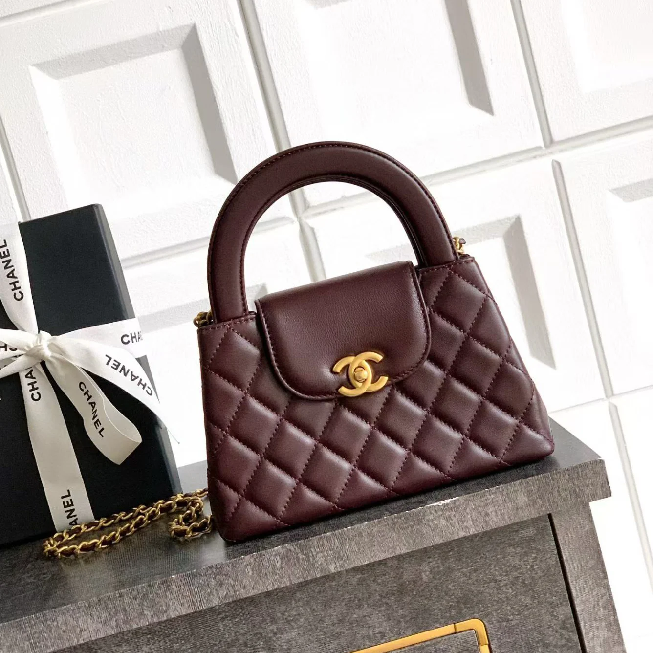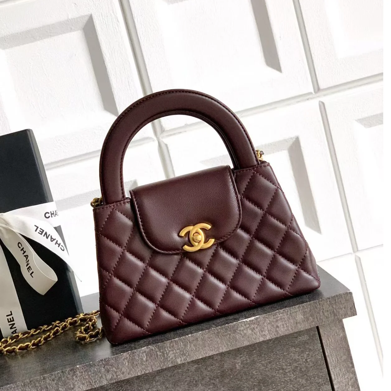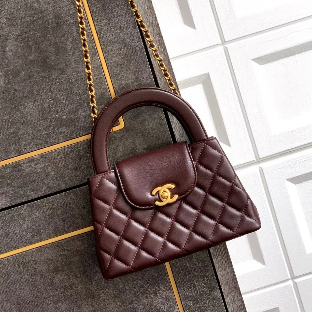 The Chanel 25A Mini Kelly Bag in Deep Brownish Burgundy redefines sophistication and luxury. Its compact size of 13x19x7 cm makes it the perfect accessory for any occasion — from casual outings to formal events. Designed with refined craftsmanship, the rich Deep Brownish burgundy color embodies a sense of bold confidence while offering a timeless aesthetic that complements every wardrobe. Whether you’re looking to make a statement or embrace understated elegance, this mini Kelly bag delivers unmatched style and functionality.