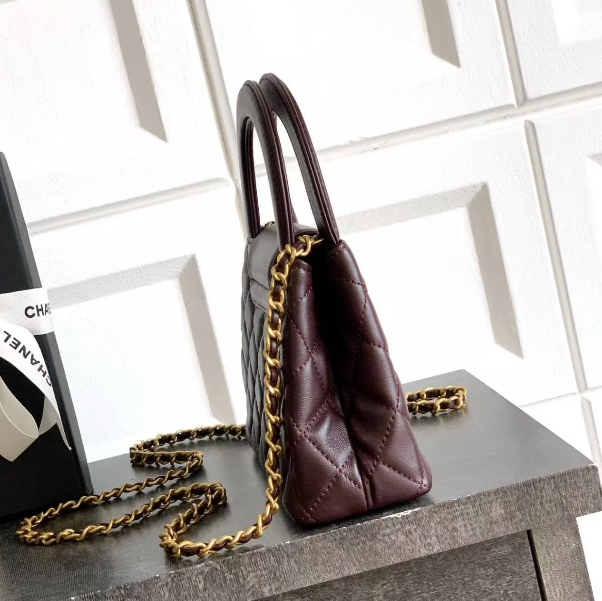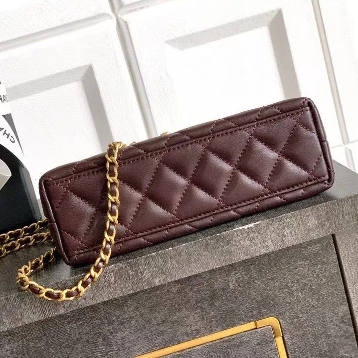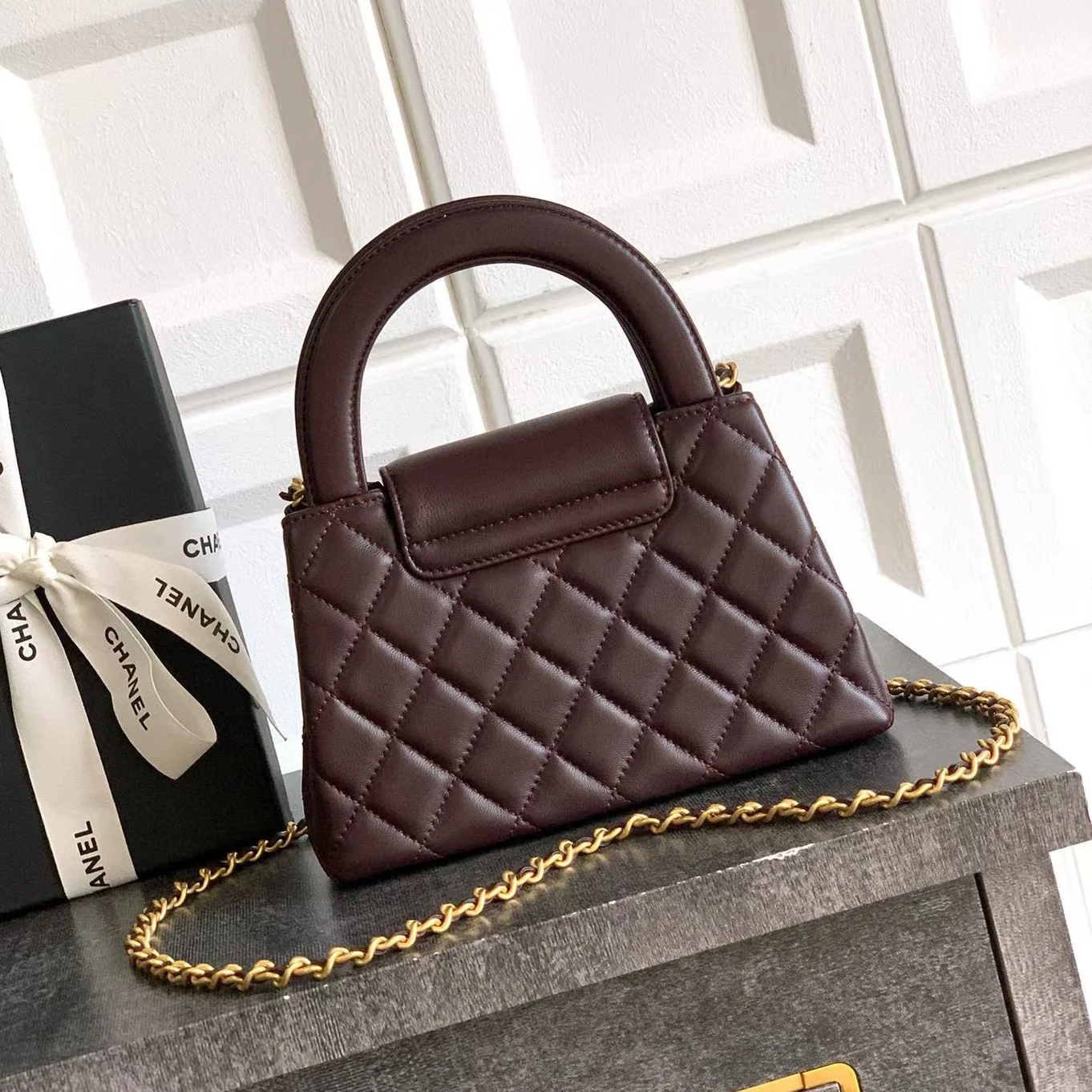 The Chanel 25A Mini Kelly Bag in Deep Brownish Burgundy redefines sophistication and luxury. Its compact size of 13x19x7 cm makes it the perfect accessory for any occasion — from casual outings to formal events. Designed with refined craftsmanship, the rich Deep Brownish burgundy color embodies a sense of bold confidence while offering a timeless aesthetic that complements every wardrobe. Whether you’re looking to make a statement or embrace understated elegance, this mini Kelly bag delivers unmatched style and functionality.