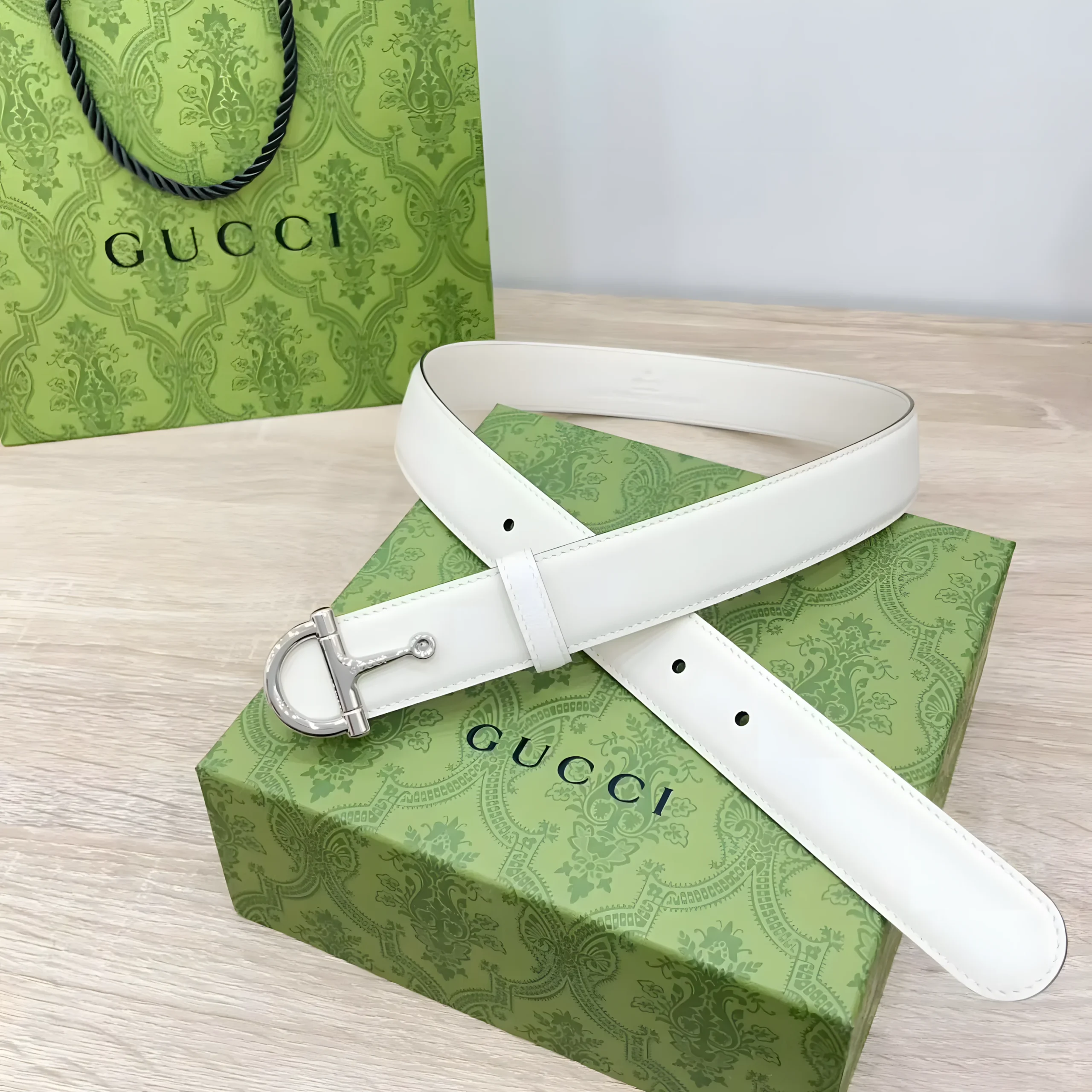 Elevate your style with the luxurious Gucci Belt—craftsmen use original leather to create it, delivering unparalleled sophistication and enduring durability. This iconic accessory boasts a striking 30mm width, which offers the ideal balance of presence and versatility. Additionally, its rich, glossy finish enhances the belt’s elegant profile, making it a standout piece for any wardrobe. Whether you dress for a formal event or elevate a casual look, this belt ensures a polished and complete outfit. Furthermore, its robust construction and refined aesthetic turn it into a long-term investment in luxury that retains value over time.