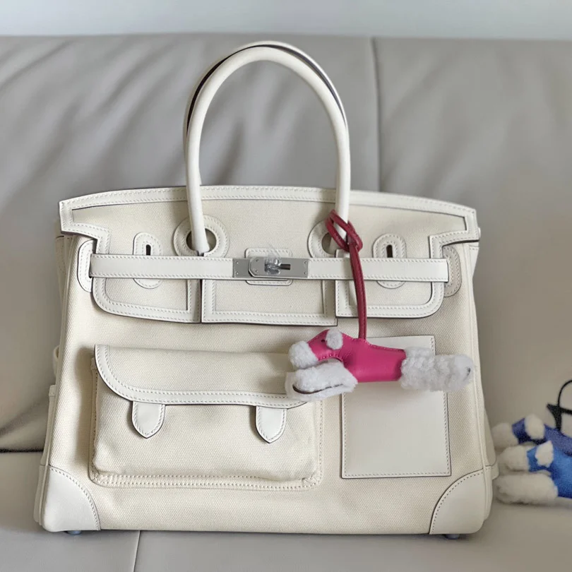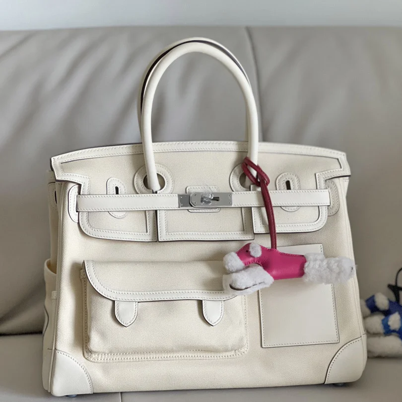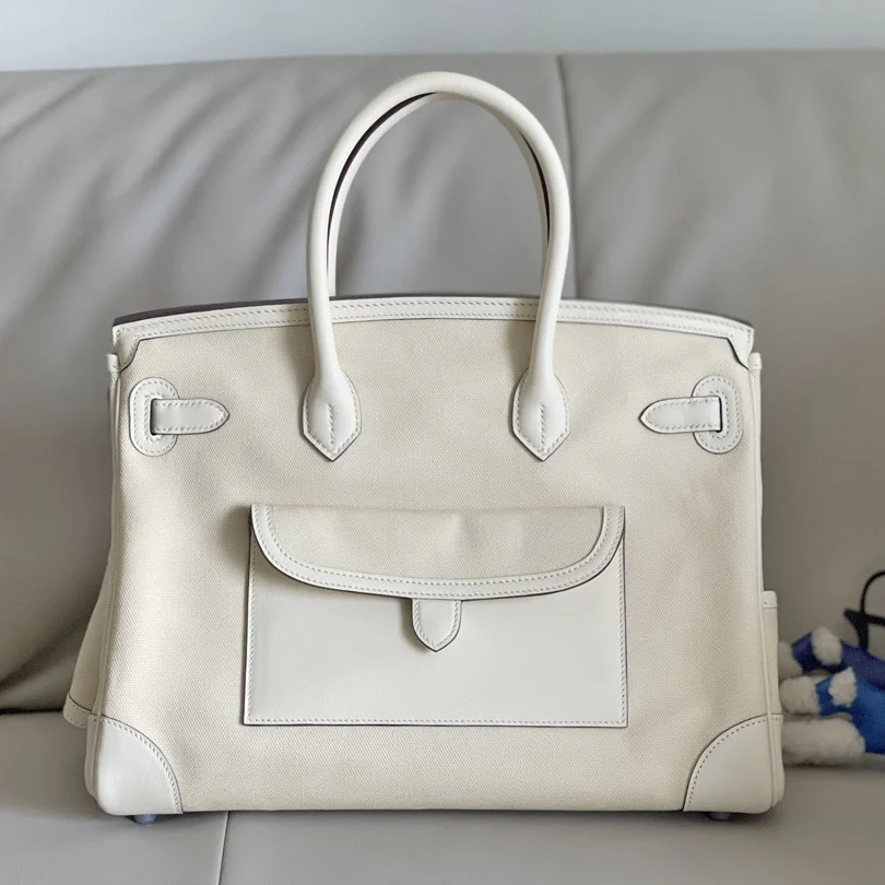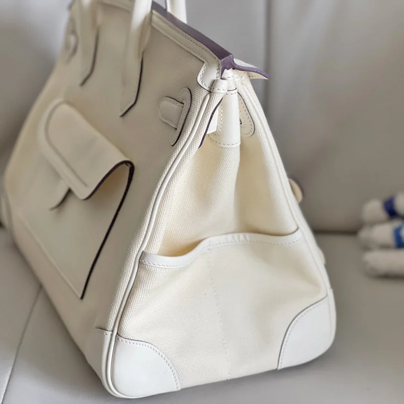 Furthermore, the combination of canvas and leather reduces weight while keeping the bag strong and reliable. Therefore, it is comfortable for daily use, short trips, or business occasions. The spacious interior provides excellent functionality, and meanwhile, the exterior pockets offer quick access to essentials. Although the design is modern, the bag still carries the timeless charm that defines the Birkin series.