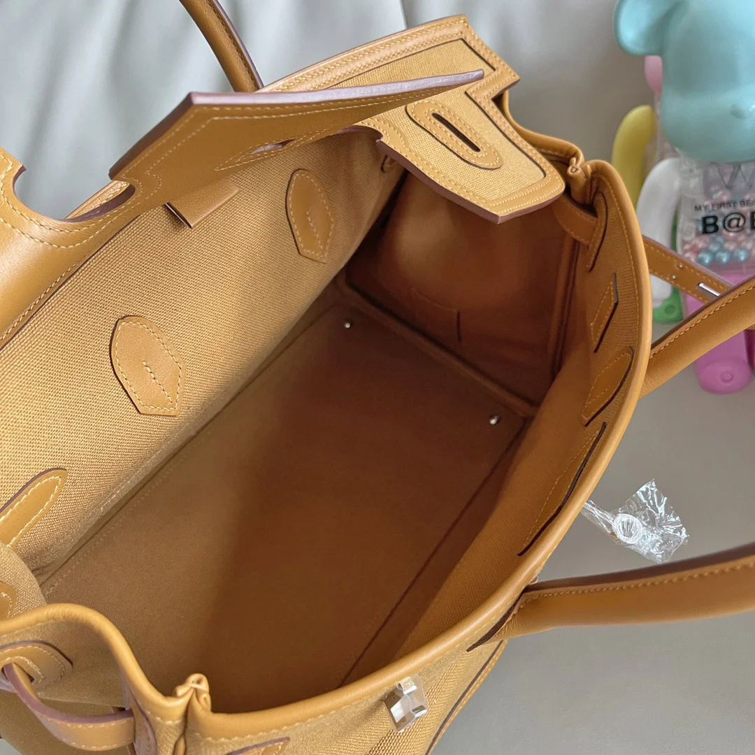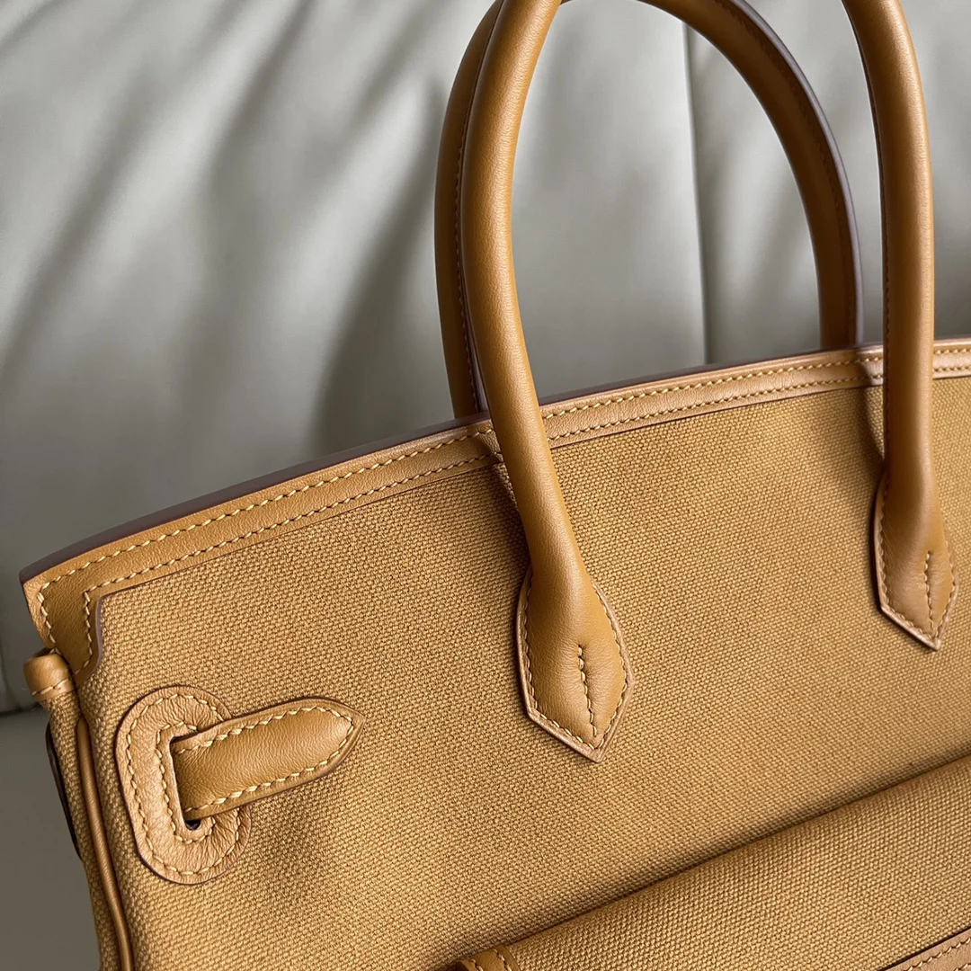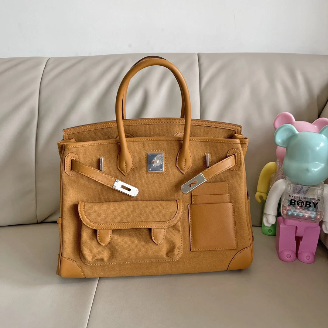 Furthermore, the combination of canvas and leather reduces weight while keeping the bag strong and reliable. Therefore, it is comfortable for daily use, short trips, or business occasions. The spacious interior provides excellent functionality, and meanwhile, the exterior pockets offer quick access to essentials. Although the design is modern, the bag still carries the timeless charm that defines the Birkin series.