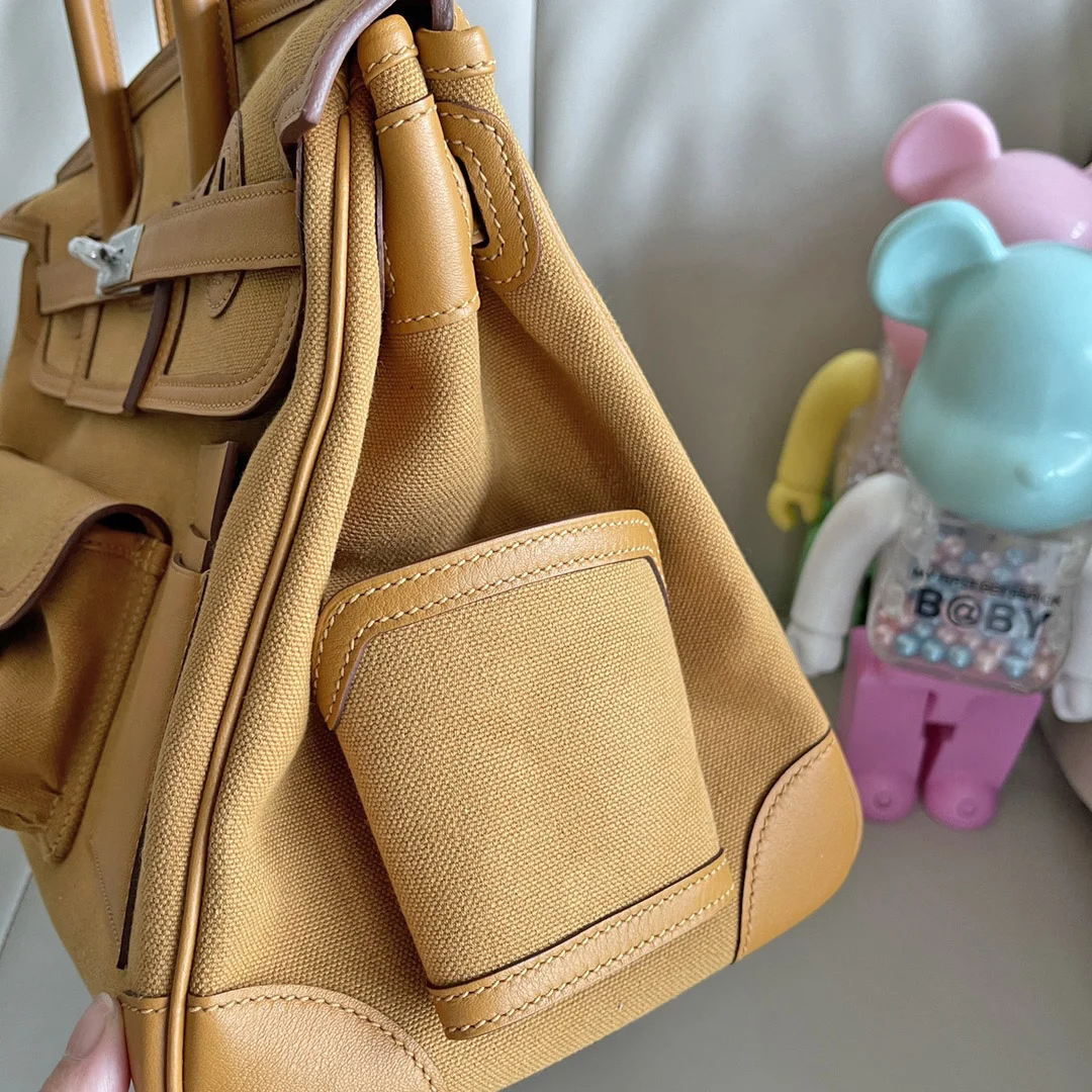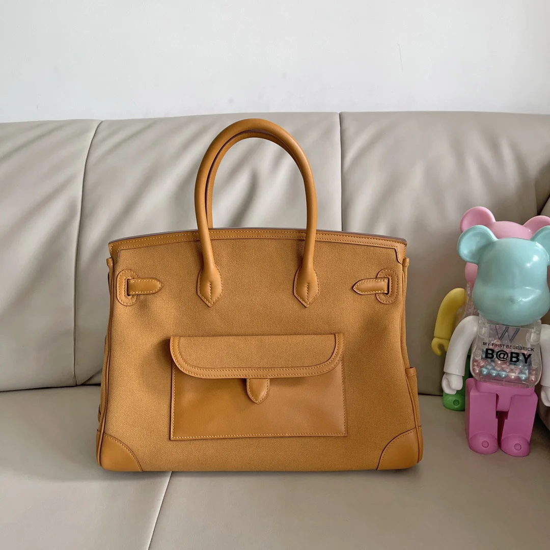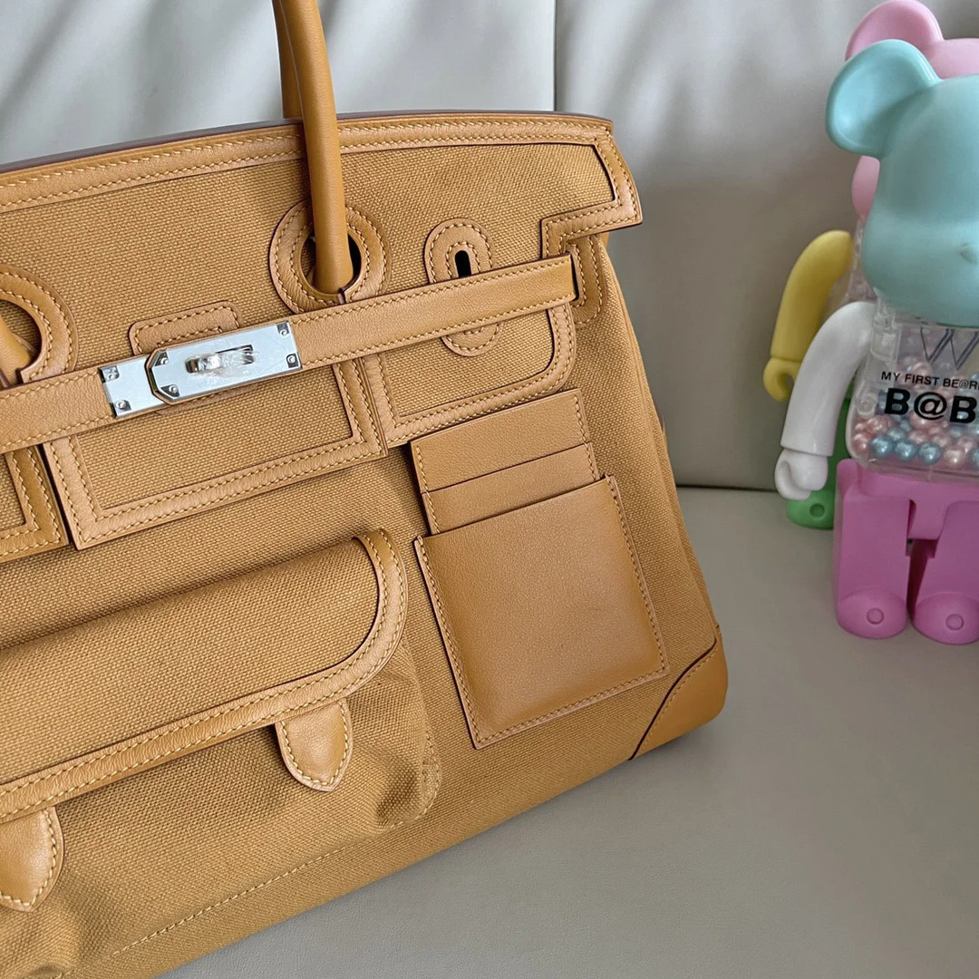 Furthermore, the combination of canvas and leather reduces weight while keeping the bag strong and reliable. Therefore, it is comfortable for daily use, short trips, or business occasions. The spacious interior provides excellent functionality, and meanwhile, the exterior pockets offer quick access to essentials. Although the design is modern, the bag still carries the timeless charm that defines the Birkin series.